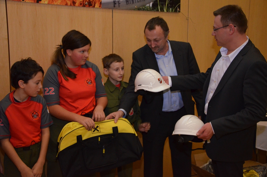 Die Jugendgruppe der FF-Hinterndobl kann auf viele spannende, lustige aber auch lehrreiche Stunden zurückblicken. So konnten Asböck Alexander, Ruttinger Simon, Kindlinger Raphael, Czech Tamara und Haderer Sven das Wissenstest-Abzeichen mit voller Punktezahl erreichen. Bei den beiden Bewerben in Pram und Andorf konnten die Jugendlichen die erste „Bewerbsluft“ schnuppern. Die Teilnahme am Jugendlager wurde mit der Qualifikation zum Finale am Drachenbootrennen belohnt. 52 Kinder besuchten die Ferienpassaktion der FF-Hinterndobl im Sommer 2015. Die 70 m Rutsche und das Pool Volleyball Becken war bei den heißen Temperaturen eine willkommene Abkühlung. So wie im jeden Jahr beendet die Jugendgruppe das Feuerwehrjahr mit dem Austragen des Friedenslichtes, die dabei gesammelten 1.260€ wurden an das Piusheim Peuerbach übergeben. Als Belohnung für die tolle geleistete Arbeit im Jahre 2015 wurde jedem Jungfeuerwehrmitglied von den Sponsoren: Schlosser Christian (Raiffeisenbank), Ahörndl Thomas (Vizebürgermeister), Dornetshummer Astrid (Sparkasse Ried/Haag) und Bischof Markus (Dorf.Wirt) ein neuer Feuerwehrhelm und eine Sporttasche übergeben.