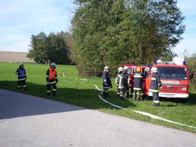 Beim Pichler in Weigljebing brennt´s. Dies war die Übungs-Annahme der Herbstübung in der Alarmstufe 2, welche von der FF-Hinterndobl organisiert wurde. Die Herausforderung lag unter anderem bei der Brandbekämpfung eines landwirtschaftlichen Objektes, Schutz der anderen Objekte, eine Gasflasche mit schweren Atemschutz bergen und das Retten und Bergen einer Person mit schwerem Atemschutz.